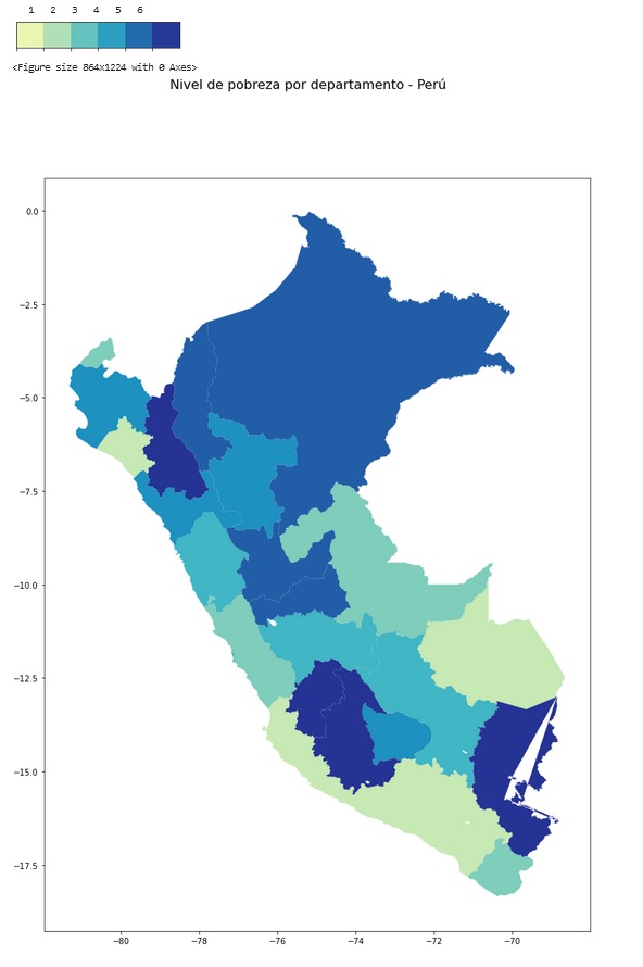 Script: It is an application that I made for the final project of the Python course at the Pontificia Universidad Católica del Perú. The map represents the percentage of poverty in Peru in 2019 by departments, according to the INEI.